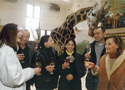 žirafy Rotschildovy, které byl při křtu za kmotra.